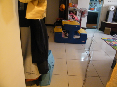 談起陽宅等疑問,無意間說到胎神之事,母親從手機找拍下孩子的照片,告訴我:「當初懷孕時,剛好租住的房子熱水管破裂,因管子埋在地板下,導致地板滲水嚴重無法使用。而且只有一台熱水器裝在廚房處,就從廚房處施工裝配明管,從廚房地面經過客廳,連接到浴室。」(當時要配裝水管時,也有看胎神位置,占房,還特別躲在房間裡;因此懷孕時還是能不動土最好。)